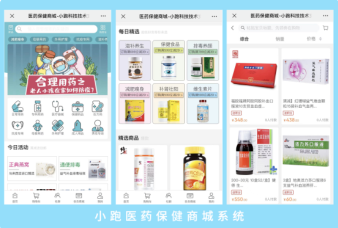 醫藥保健商城系統開發能夠完成網上購物配送、醫藥資訊、在線答疑、周邊藥店查詢購買等功能。通過互聯網面對更多的用戶,服務更多的群體。對于醫藥行業發展有巨大的幫助。如果您也有開發醫藥保健商城系統APP或小程序的想法,歡迎與我們小跑科技聯系。